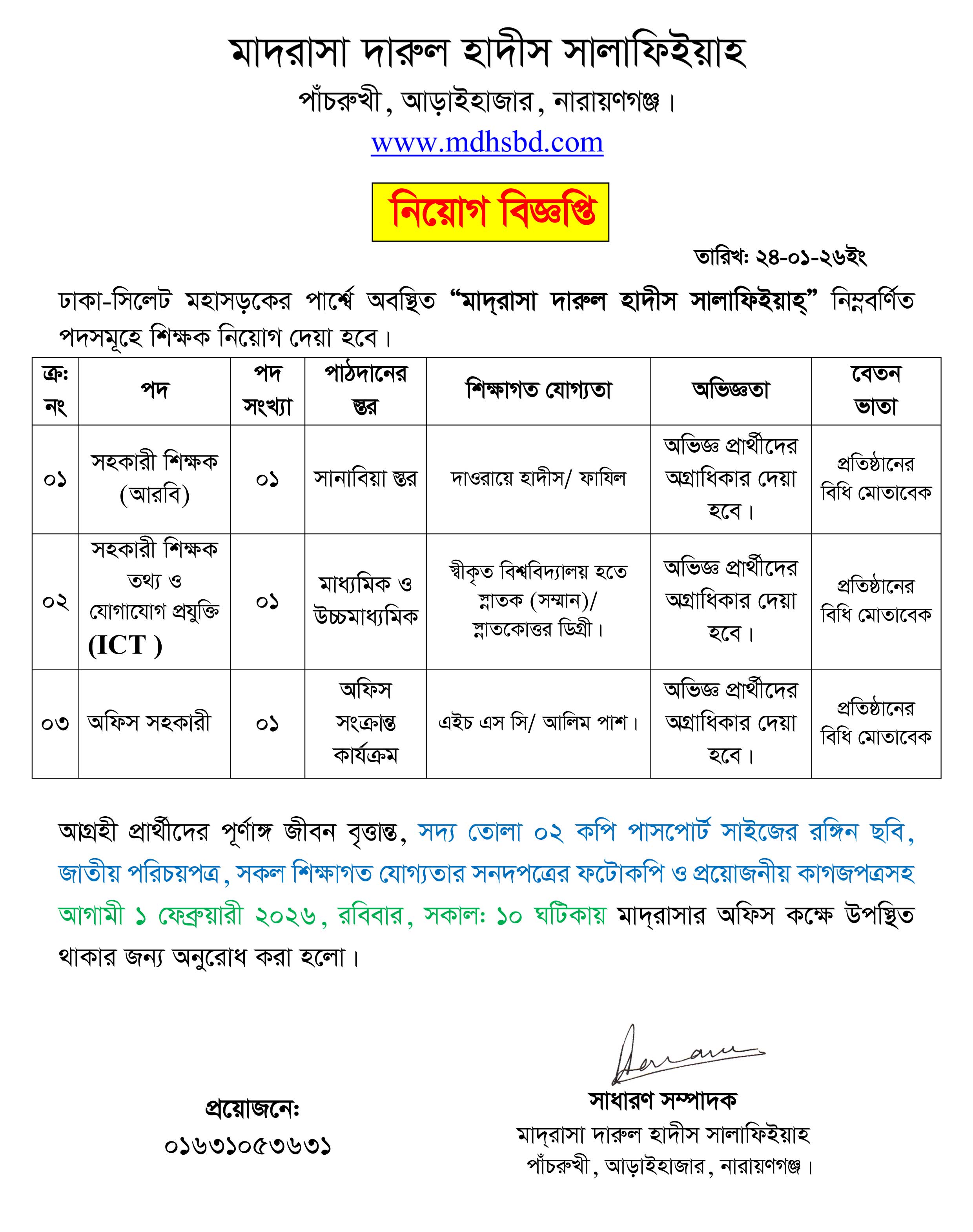 ওয়েব সাইট : www.mdhsbd.com